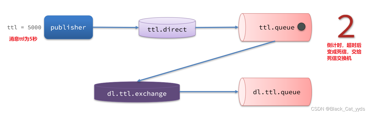 - 给队列设置ttl属性,进入队列后超过ttl时间的消息变为死信