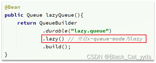 而要设置一个队列为惰性队列,只需要在声明队列时,指定x-queue-mode属性为lazy即可。可以通过命令行将一个运行中的队列修改为惰性队列:
