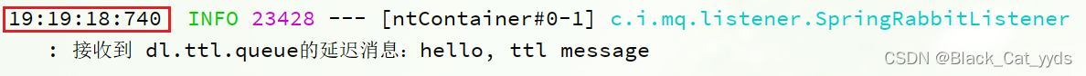 因为队列的TTL值是10000ms,也就是10秒。可以看到消息发送与接收之间的时差刚好是10秒。