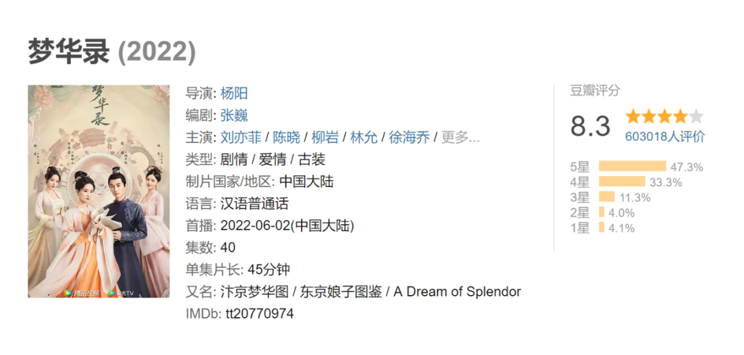 年度最高分国产剧《梦华录》7月2日迎来大结局,虽然目前豆瓣最新评分8.3,比起刚开始的8.8分“神剧”打分有所降低,但仍不能否认,这是今年夏天最惊喜的“出圈”之作。