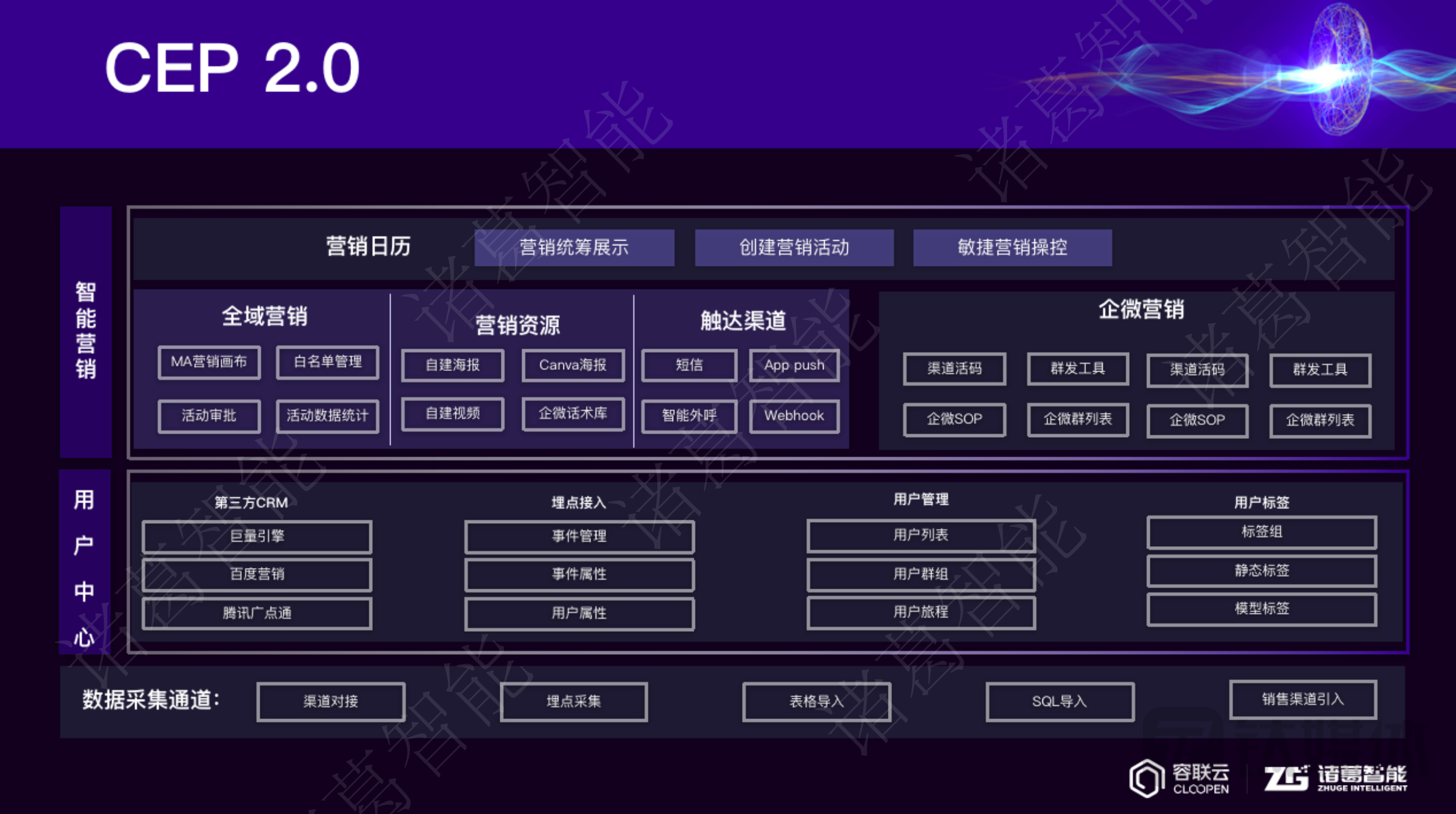 对此,诸葛智能进一步升级推出诸葛CEP 2.0平台,为企业提供智能营销全场景解决方案,包括全域营销服务、营销资源整合、触达渠道全覆盖等,对用户互动进行全面涵盖和支撑。通过四大平台能力,实现把每一个可触达的用戶都纳入营销体系,持续性运营转化。