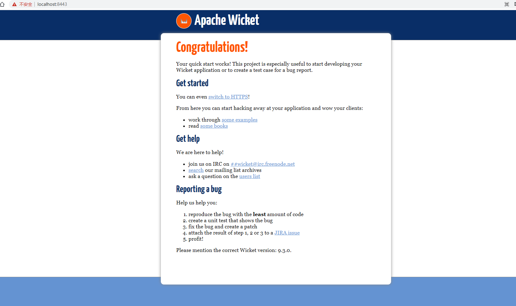 Wicket comes with a collection of examples meant to help you understand the basic concepts of the framework. They are particularly helpful if you are new to Wicket and you are reading our User Guide. You can see these examples and many more in live action (available also for version 8.x, 7.x and 6.x) without having to install anything.