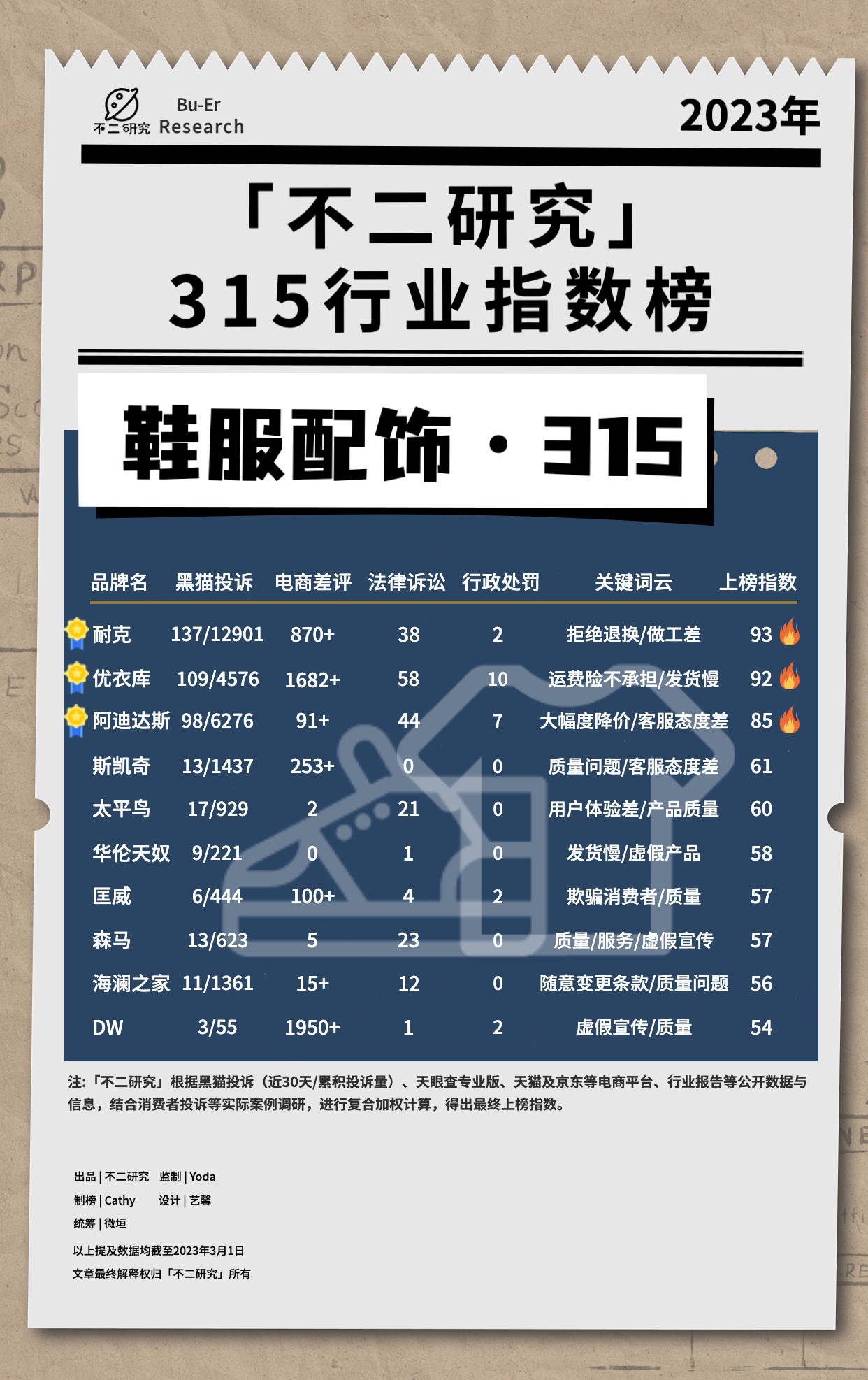 「不二研究」315行业指数榜,支持消费者维护合法权益,呼吁更清朗的维权环境;另一面,期望品牌方能够以实际产品力与售后服务力,与消费者进行公平对话。