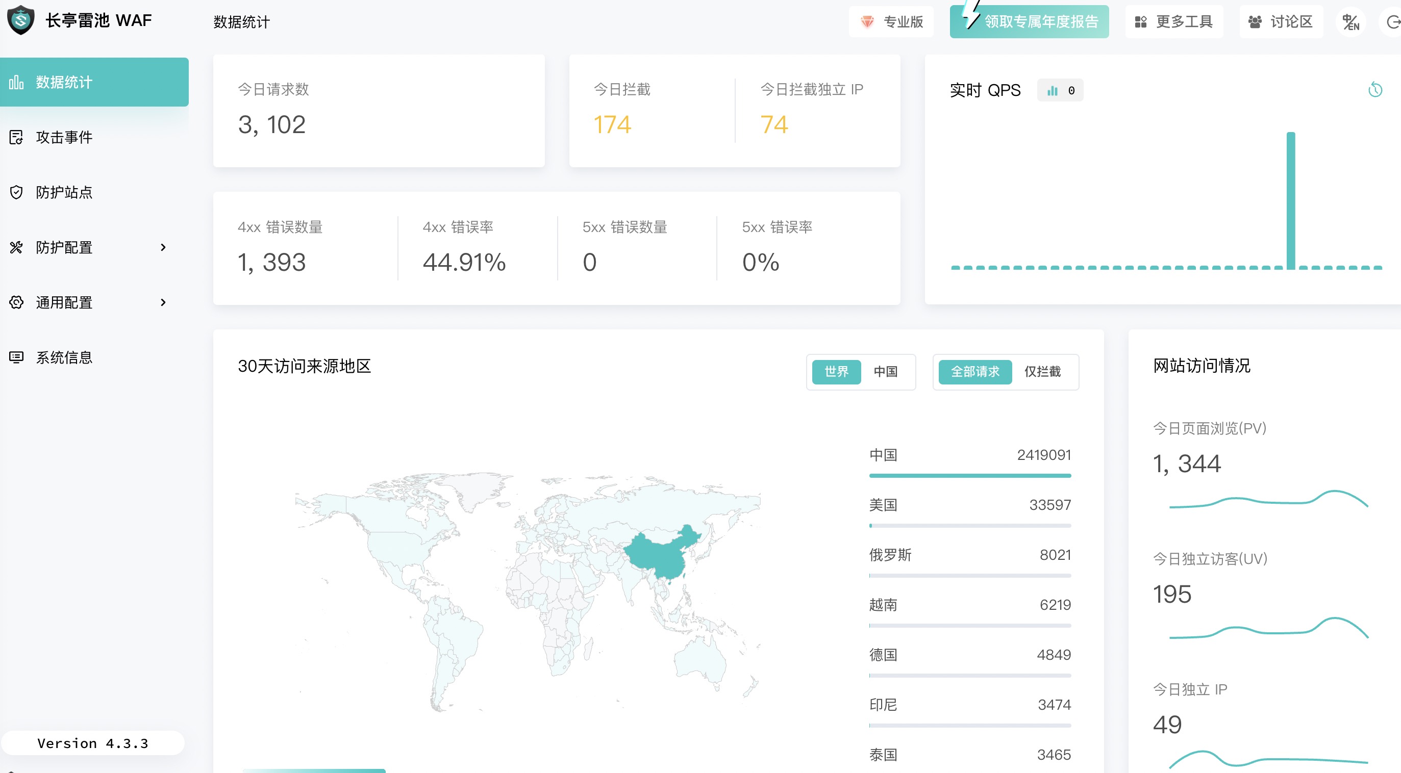 推荐的雷池社区版——一个为网站提供全面安全防护解决方案的平台,它不仅具备高效的安全防护能力,还让网站安全管理变得简单而高效。