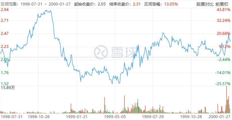 杉杉1999年的股价大幅下跌 截图于雪球