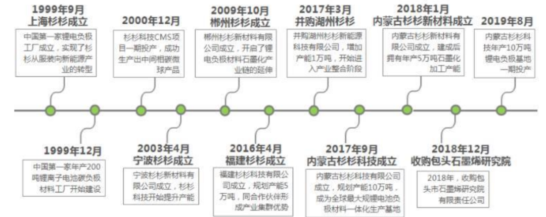 1999年,上海杉杉科技有限公司(以下简称“杉杉科技”)成立,是国内第一家专业从事锂电池负极材料研发、生产与销售的企业。
