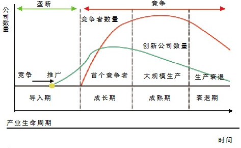 按照该理论,任何产业都要经历一个由成长到衰退的演变过程,包括导入期、成长期、成熟期、衰退期,在不同时期,企业需要用不同的战略来应对。