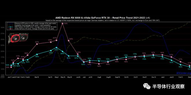 究其原因,一方面就是挖矿潮的褪去。从2020年底开始,比特币,以太坊等虚拟货币的火热,带动着挖矿重要工具——GPU的价格一路飙升,英伟达RTX 3080一度涨至16000元以上,一卡难求现象频频发生。然而,随着虚拟货币价格不断下跌,以及世界各国加强对挖掘虚拟货币行为的限制,以太坊的合并升级进度不顺等等,挖矿的风险越来越大,收益越来越低,大量矿工退出币圈,显卡价格回落明显。
