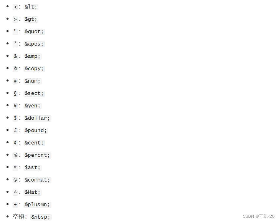 是字符的名字。下面是其中一些特殊字符,及其对应的实体。