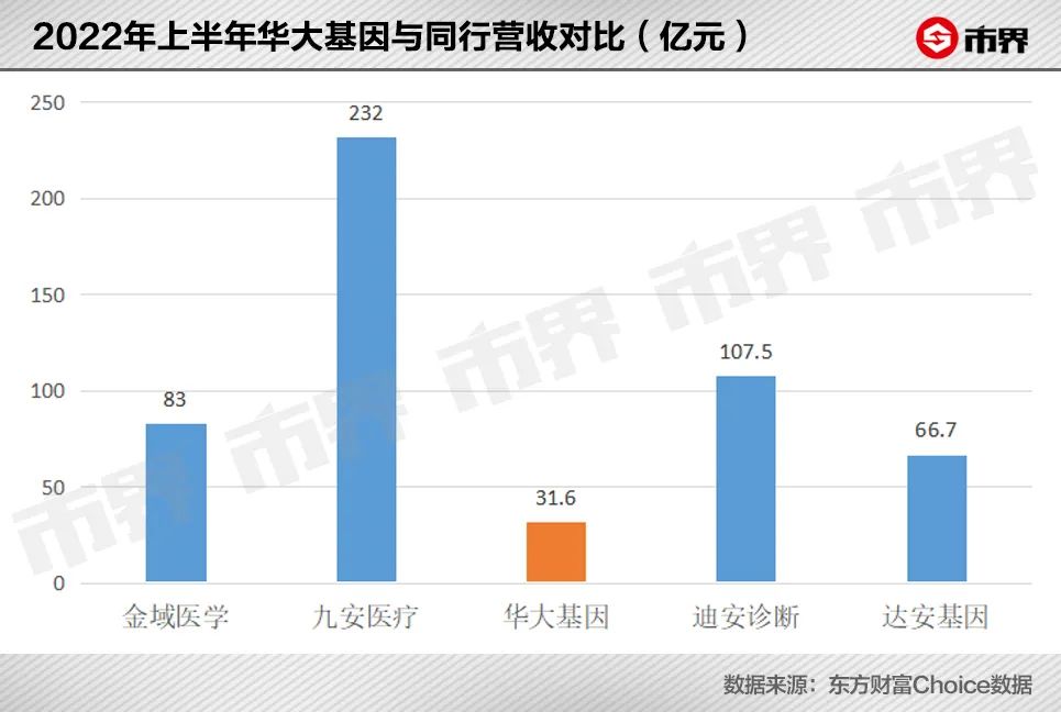 凭借核酸检测赚得盆满钵满的华大基因,却在2022年上半年成为核酸检测龙头中为数不多业绩不增反降的企业。8月24日,华大基因披露半年度报告,公司2022年上半年实现营收31.61亿元,同比下降13.30%;净利润为6.05亿元,同比下降44.21%。