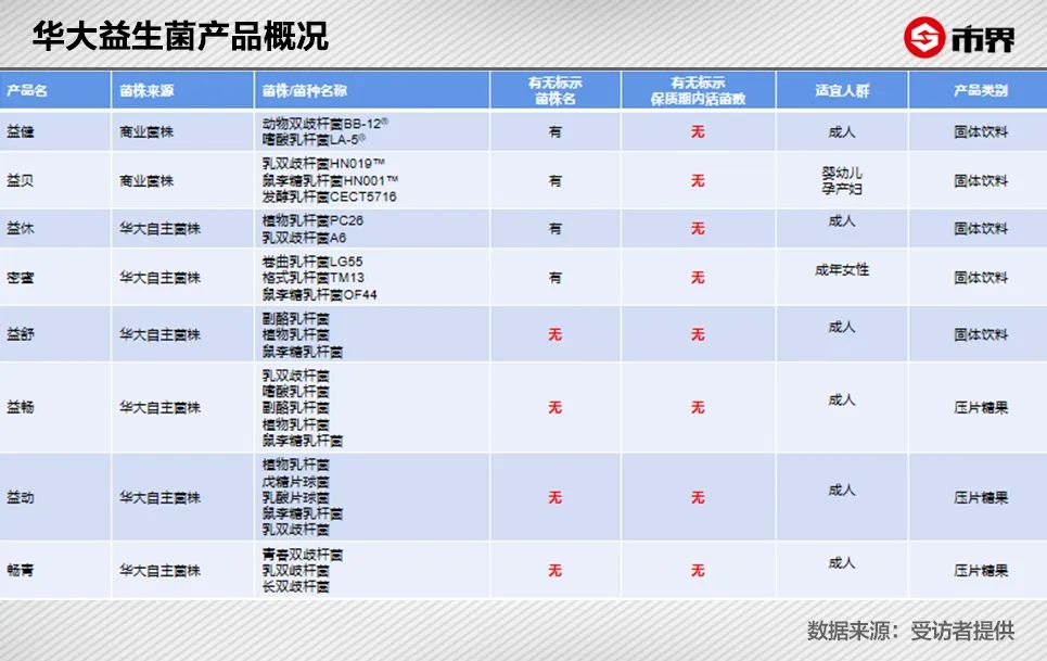 (营养师王喜平提供了当前华大基因在售益生菌食品概况图)