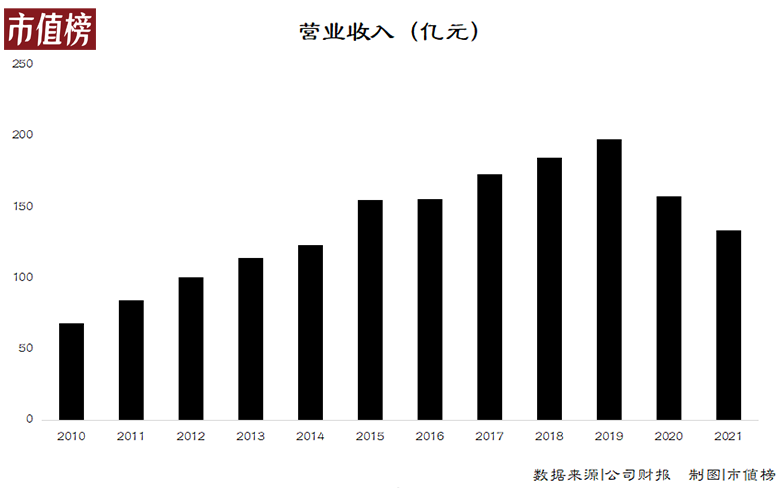 经营层面,2019年步步高收入登顶,达到197.25亿元,此后两年,步步高的营收降幅均在15%以上。