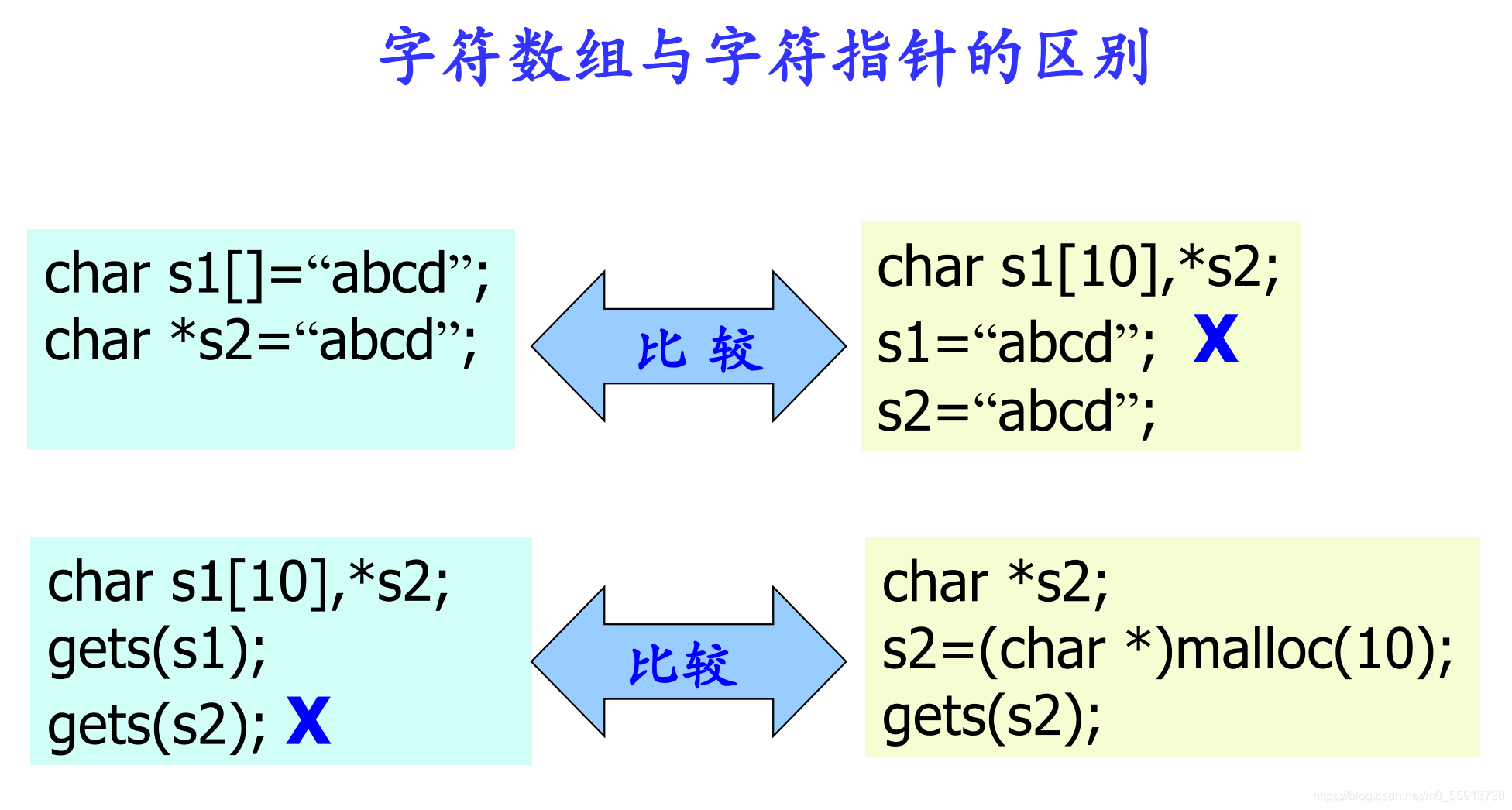 gets()对s1可以,对s2不行:自己的理解:s1是数组名,是数组的首地址,有明确的指向,gets实际上是对指针所指向的变量进行赋值(指针所指向的变量有存储空间)。而s2没有明确的指向,所以不能对他所指向的量进行赋值。