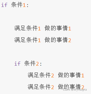 当 “性别为男性” 满足时,执行 “输出男性的体重”的相关代码 当 “性别为男性” 不满足时,如果 “性别为女性”满足,则执行 “输出女性的体重”的相关代码 当 “性别为男性” 不满足,“性别为女性”也不满足,那么久默认执行else后面的代码,即 “第三种性别的体重”相关代码