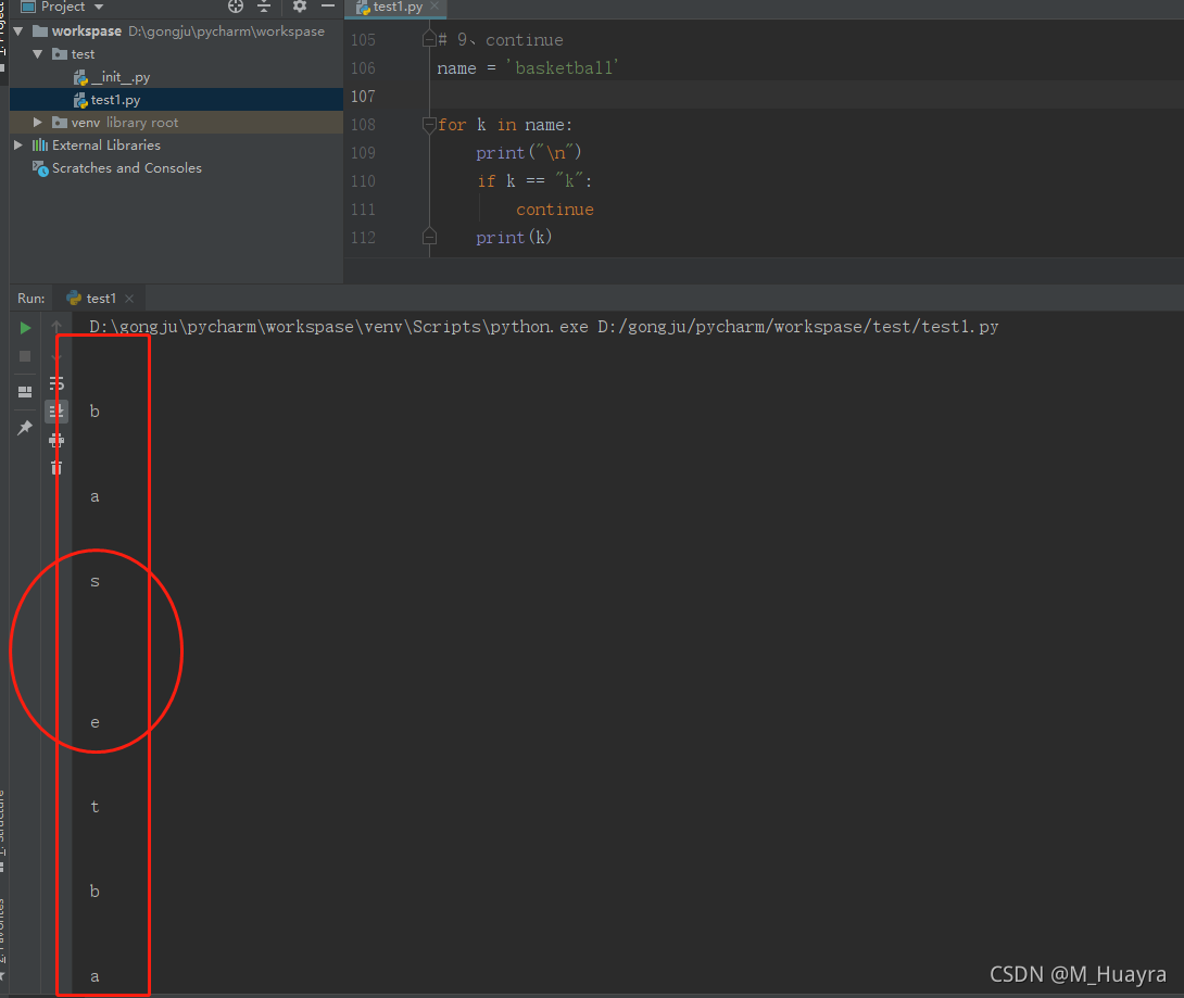 continue的作用:当满足条件时,用来结束本次循环,紧接着执行下一次的循环