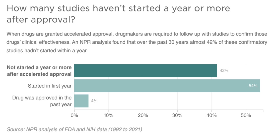 获批一年后才开展确证性实验占到42%(NPR)