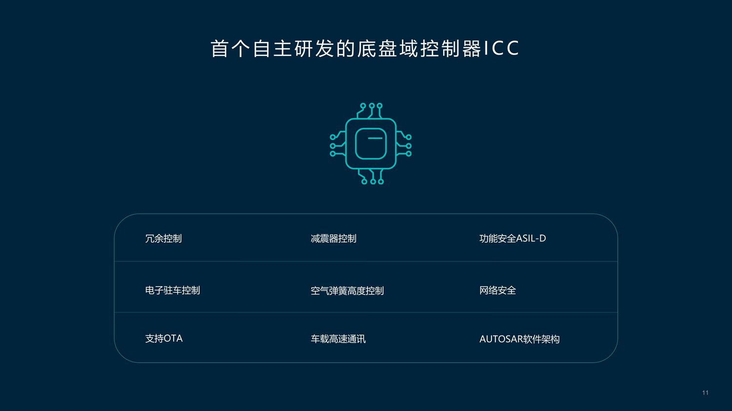蔚来将底盘控制提升为“域”的概念,智能底盘域控制器ICC可以统一调整控制空气弹簧高度、减振器阻尼、电子驻车等功能。
