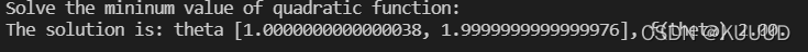 print("The solution is: theta %s, f(theta) %.2f.\n" % (theta, f_theta))