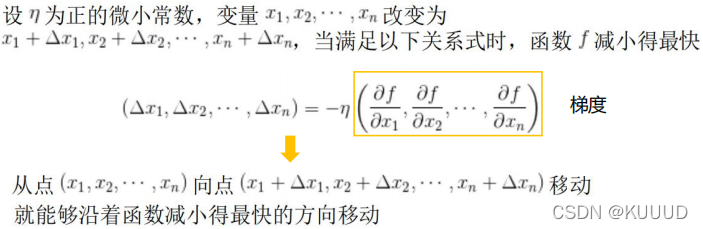 1)所谓梯度下降法,就是分别求损失函数对各个参数的偏导数,然后乘以一个系数η,把它作为参数的更新量。这个参数η,就称为学习率。