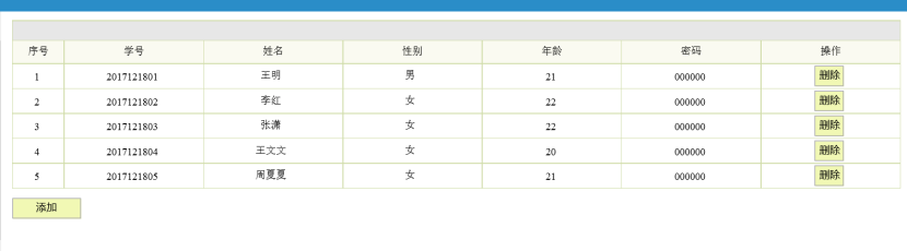 2.班级管理功能:该功能属系统管理员功能,实现了系统管理员对所有班级的管理操作,可以添加一个新的班级,也可以对已经添加的班级进行删除的操作。