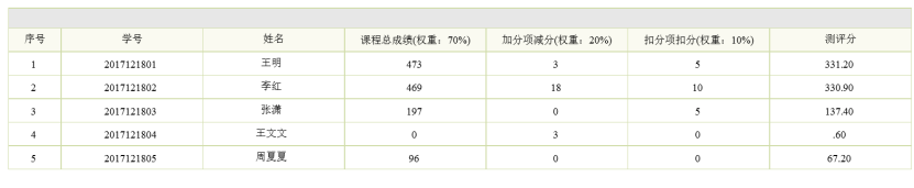 8.评分项权重设置:设置科目成绩、加分项、扣分项占比权重,测评统计根据权重设置计算得到。