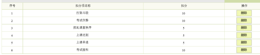 6.扣分管理功能:该功能属系统管理员功能,即对所有扣分信息进行管理操作,可以添加一个新的扣分,也可以对已经添加的扣分进行删除的操作。