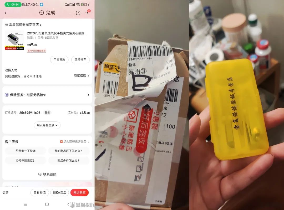 甚至一位消费者向新消费日报表示,自己在电商平台购买了某品牌价值48元的血氧仪,到货后发现包裹里只有一个价值不超过5块的指甲刀。
