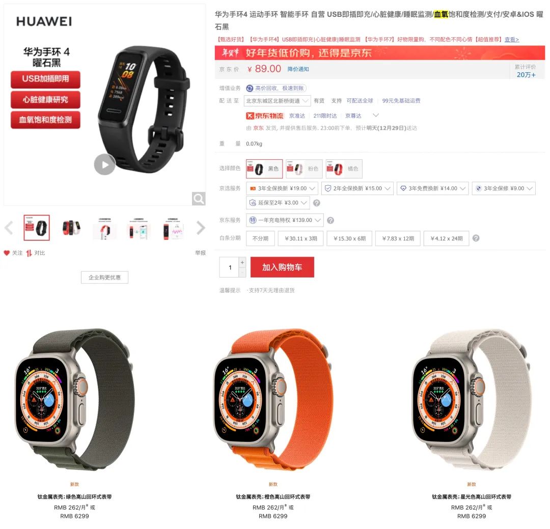 电商平台上,价格最低从89元的智能手环,到6000元+的智能手表,基本涵盖了大部分的价位段。