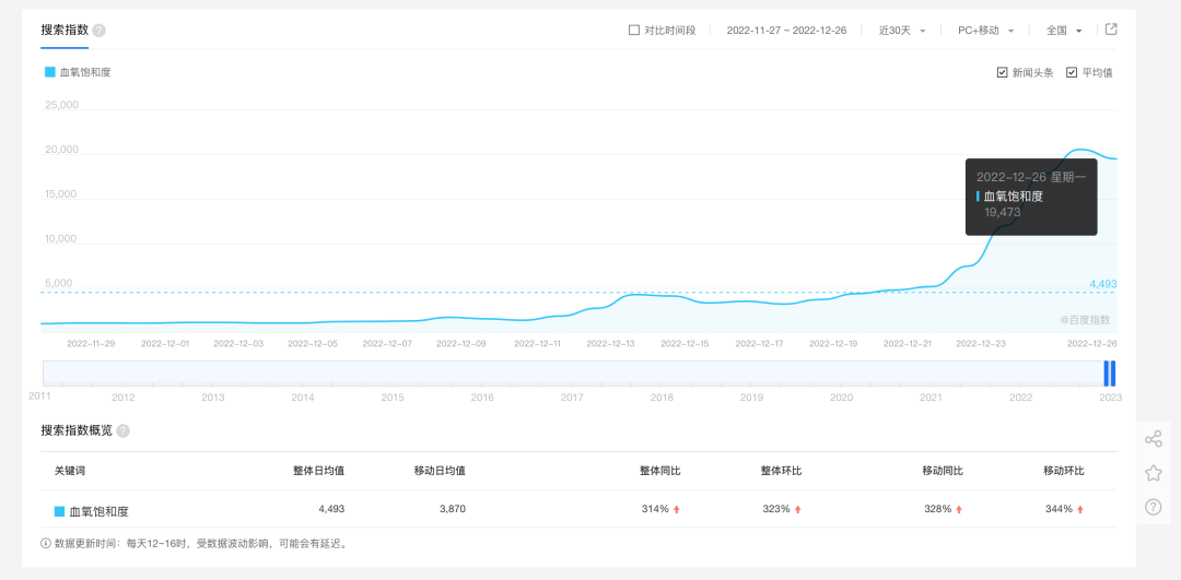 一时之间,“血氧饱和度”这一关键词在百度上的搜索指数呈300%以上的上涨。
