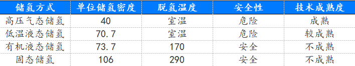 主要储氢方式特征对比