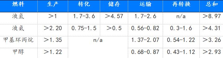 目前主要的液态载体有氨(NH3)、甲醇(CH3OH)和液态有机氢载体(LOHC)。其中,液氨是最有效的长距离,特别是跨洋氢气输送的最佳载体。但在成本方面,甲醇和甲基己烷更有竞争力。