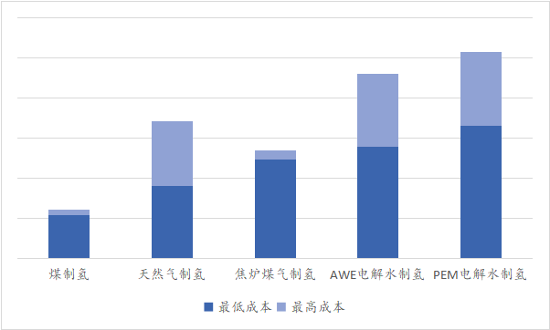 不同制氢方式制氢成本区间