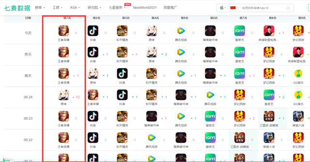 七麦数据也显示,王者荣耀的暑期下载量飙升,持续霸榜畅销榜单第一名。而暑期活跃度与周末活跃度的上升,明显也与许多学生群体因放假加入该游戏不无关系。