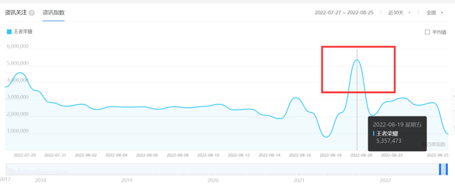 从最近百度指数的趋势来看,王者荣耀在暑期活跃度与周末活跃度呈现明显上升的趋势。根据移动应用数据分析公司Sensor Tower发布的数据,《王者荣耀》在全球App Store和Google Play7月的收入超过2.25亿美元,折合人民币超过15亿元,蝉联全球手游畅销榜冠军。