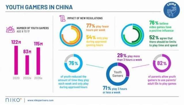 近日Niko Partners新调查报告显示,2020年中国未成年人游戏玩家约为1.22亿人,占未成年人总人数60%。而在防沉迷新规出台后,目前这一比例降为40%,但人数预估依然高达8300万人。