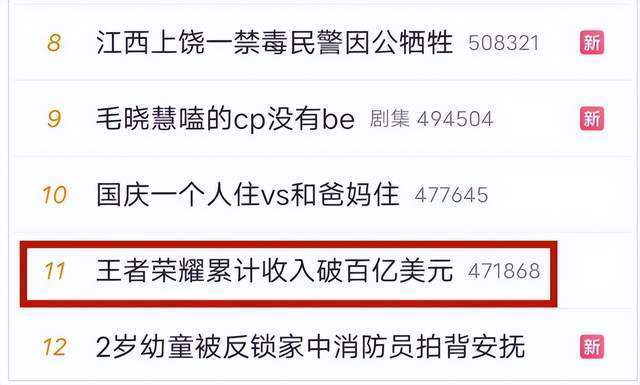2020年疫情之后到今年,“宅经济”盛行,王者荣耀屡创高点,据光大证券在不久前发布的预测显示,仅在一月份,《王者荣耀》手游流水就达到了92亿元。去年10月,王者荣耀总营收突破100亿美元登上微博热搜,成为人类历史上收入最高的游戏。