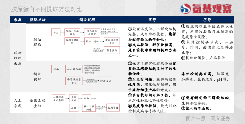 从制备方法来看,全球范围内,由于具备工艺成熟、提取制备的胶原活性强等优势,动物组织胶原提取技术仍为主流胶原制备技术。