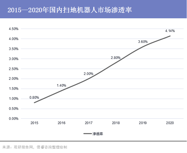 一方面,2020年扫地机器人市场渗透率达到4.14%,离5%差距极小;