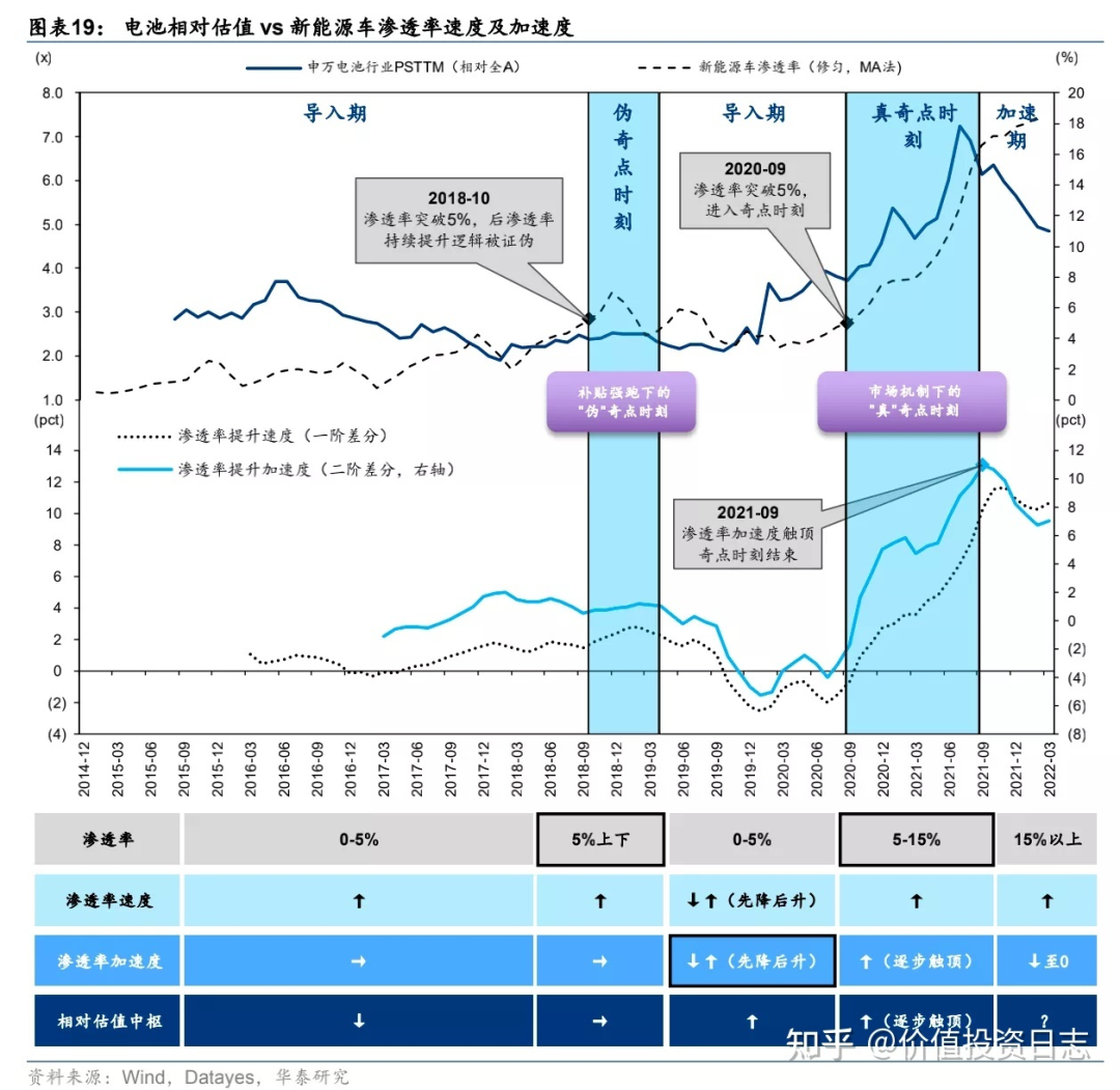 而当2020年9月,新能源汽车渗透率突破5%后,在动力电池技术突破及碳中和背景下,新能源汽车产业迅速发展放量,宁德时代、恩捷股份等电池龙头企业估值从3.7x上升至最高7.3x。企业和资本都赢麻了。
