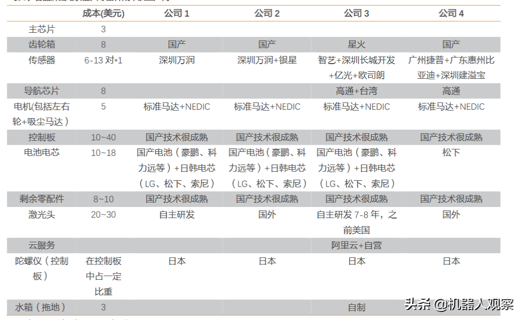 (扫地机器人硬件成本核算 图源:头条@机器人观察)