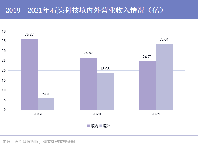 更惨的是,这一年,石头科技的业绩,也难令人满意,营收同比增长28.84%至58.37亿,增速看似还行,但隔壁老大哥这一年的营收增速高达80.9%;而且这一年石头科技国内营收绝对值较上年还减少2亿多。