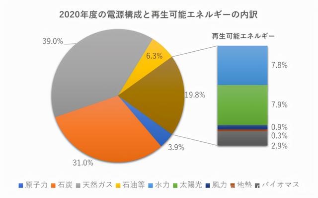 2020年全世界能源结构中,各国的可再生能源的占比都较为亮眼,特别是欧洲,瑞典和葡萄牙的可再生能源的比例甚至超过化石能源,丹麦可再生能源的比例达到了80%,成长最快的是中国和美国,全世界新增可再生能源的发电量之中我国占比52%,日本在其中显得格外突兀。