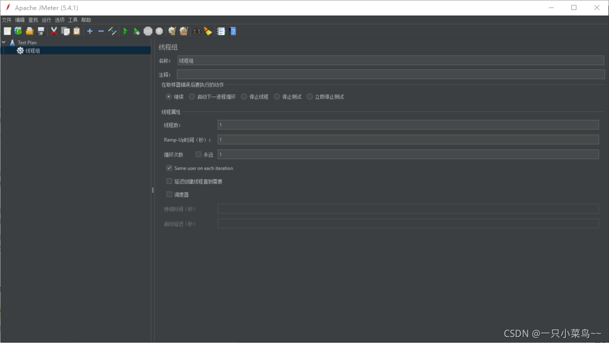 独立运行每个线程组:默认不勾选,如有多个线程组时,直接并行执行;勾选后,按照顺序执行,也就是一个一个线程组执行