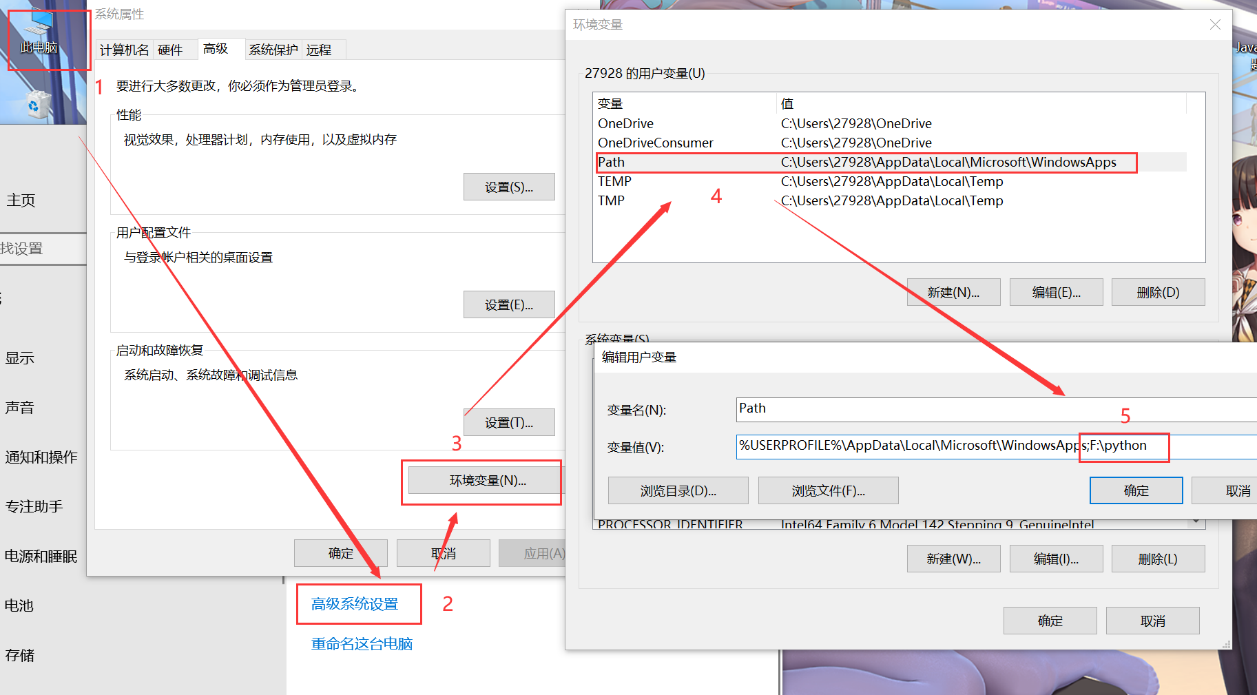 然后在"Path"行,添加python安装路径即可(F:\python),在后面,添加该路径即可。 ps:记住,路径直接用分号";"隔开!