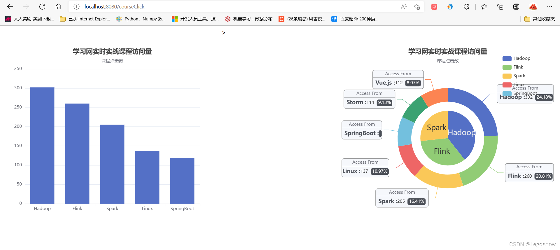 网站默认10s刷新一次,此时开启scala目录的三个进程,再开启python脚本,页面便可以10秒更新一次数据,从而达到实时数据的展示