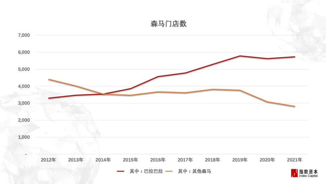 ▲森马主品牌门店数近年来持续收缩,而童装线不断上扬(图源:指数资本)