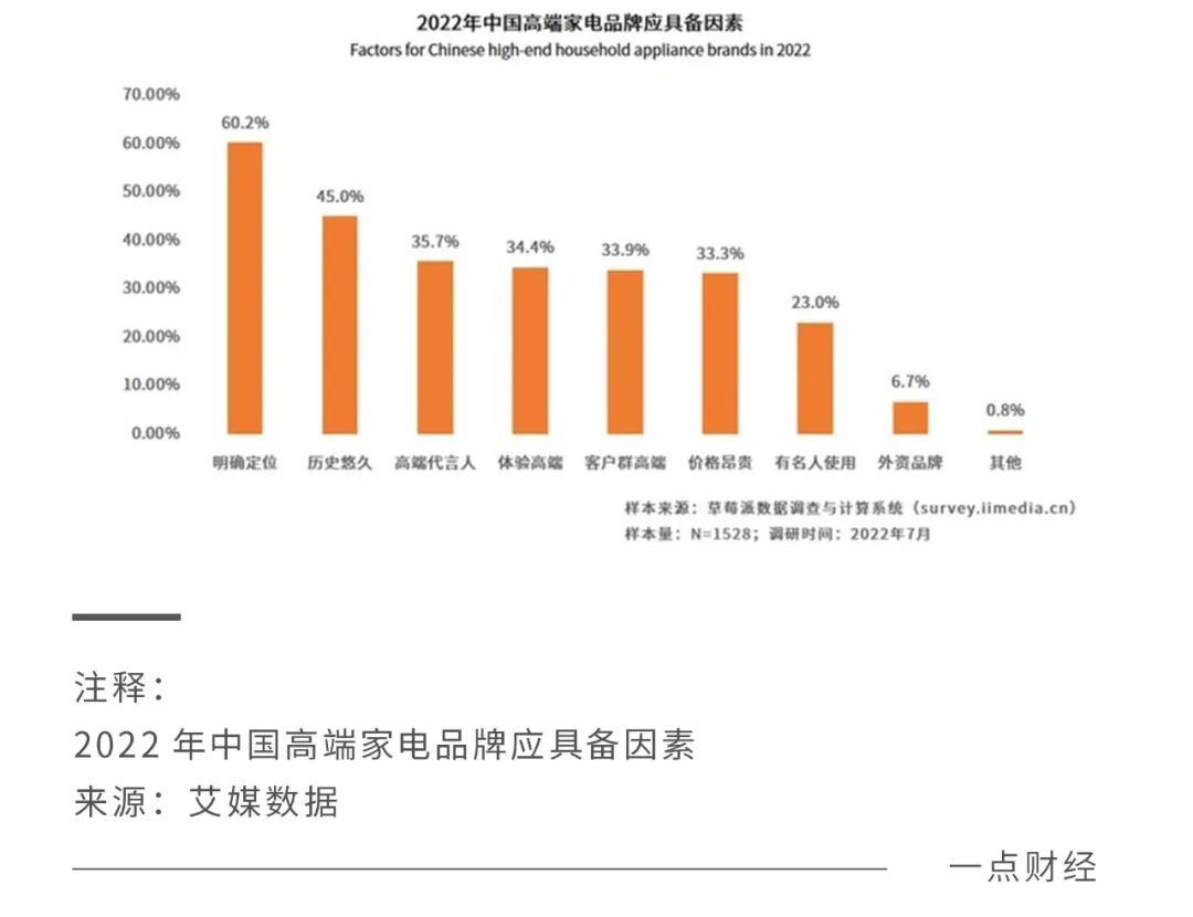 不过,庞大消费人群之下众口难调,高端家电品牌应该找到符合自身发展和目标人群需求的定位,才能真正冲出重围跑出差异化道路。艾媒咨询报告也指出,在中国高端家电品牌应具备的因素当中,**“明确定位”**排在首位。