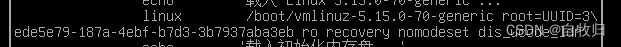 将ro recovery nomodeset dis_ucode_ldr 改为quiet splash rw init=/bin/bash