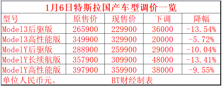 汽车降价早有先兆,2023年初特斯拉就宣布全面降价,其中Model Y长续航版降价最狠,由357900元,直接降至309900元,一下降价48000元,降幅高达13.41%。其他车型也有最低两万元的降价,最低降幅也有5.72%。