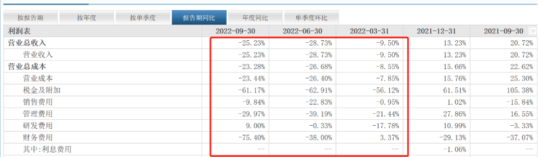 其中东风日产今年1-2月累计销售10.1万辆,同比下滑52.5%;东风本田前2个月仅销售6.2万辆,同比下滑54.8%。东风汽车的销量正以肉眼可见的速度在急速下滑。财报同时显示(如下图)整个2022年三个季度几乎所有数据指标值都出现不同程度的下滑。